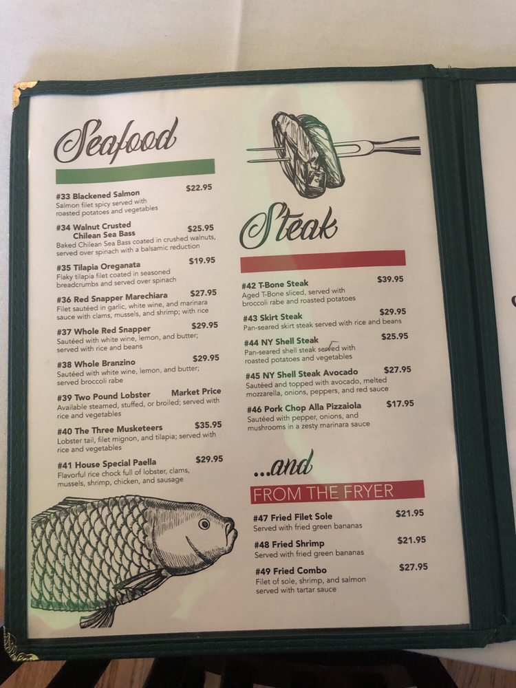 Filet sole, shrimp, and salmon served in tartar sauce . Served w/ fried green bananas